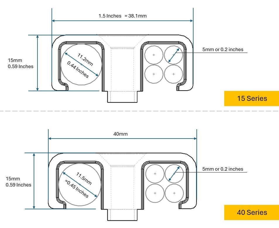 When you need your wiring to be "not going anywhere", these bolt-on clips are here to help! These clips are attached with drop-in T-nuts to easily and securely guide your wires. Price includes mounting hardware: - M6 Screws - Drop in T-nuts 40 Series vs 15 Series: 40 Series extrusion has a unit beam width of 40mm and a slot width of 8mm 15 Series extrusion has a unit beam width of 1.5" (inches) and a slot width of 5/16" ** The 15 Series version of the clip is slightly narrower at 1.5" (~38.1mm) in width; compared to the 40 Series version which is 40mm. This is to ensure that the clip sits flush with the face of the extrusion and will not interfere with any adjacent accessories.