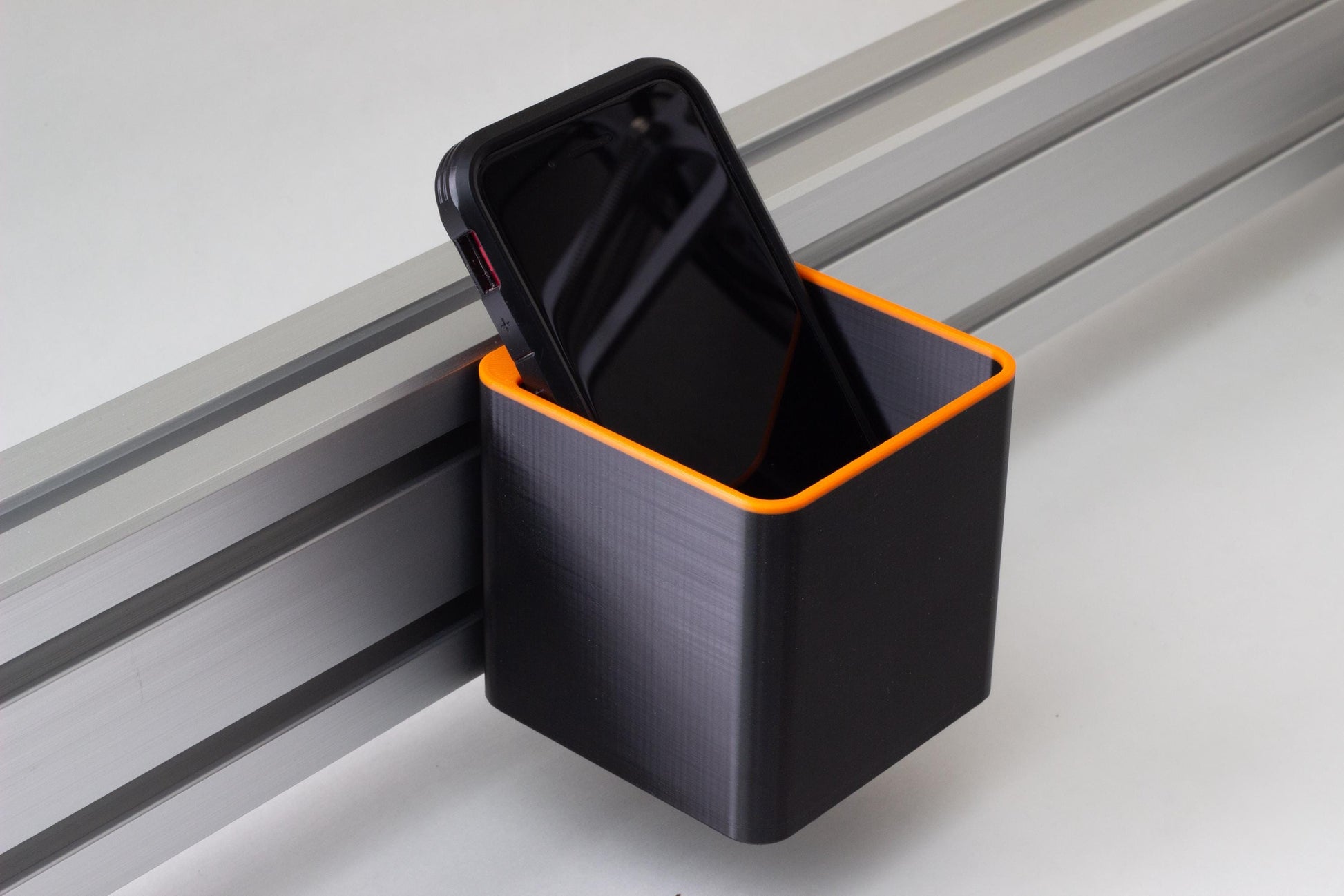Cup Holder / Storage Bin for Aluminum Extrusion Sim Racing or Flight Rig