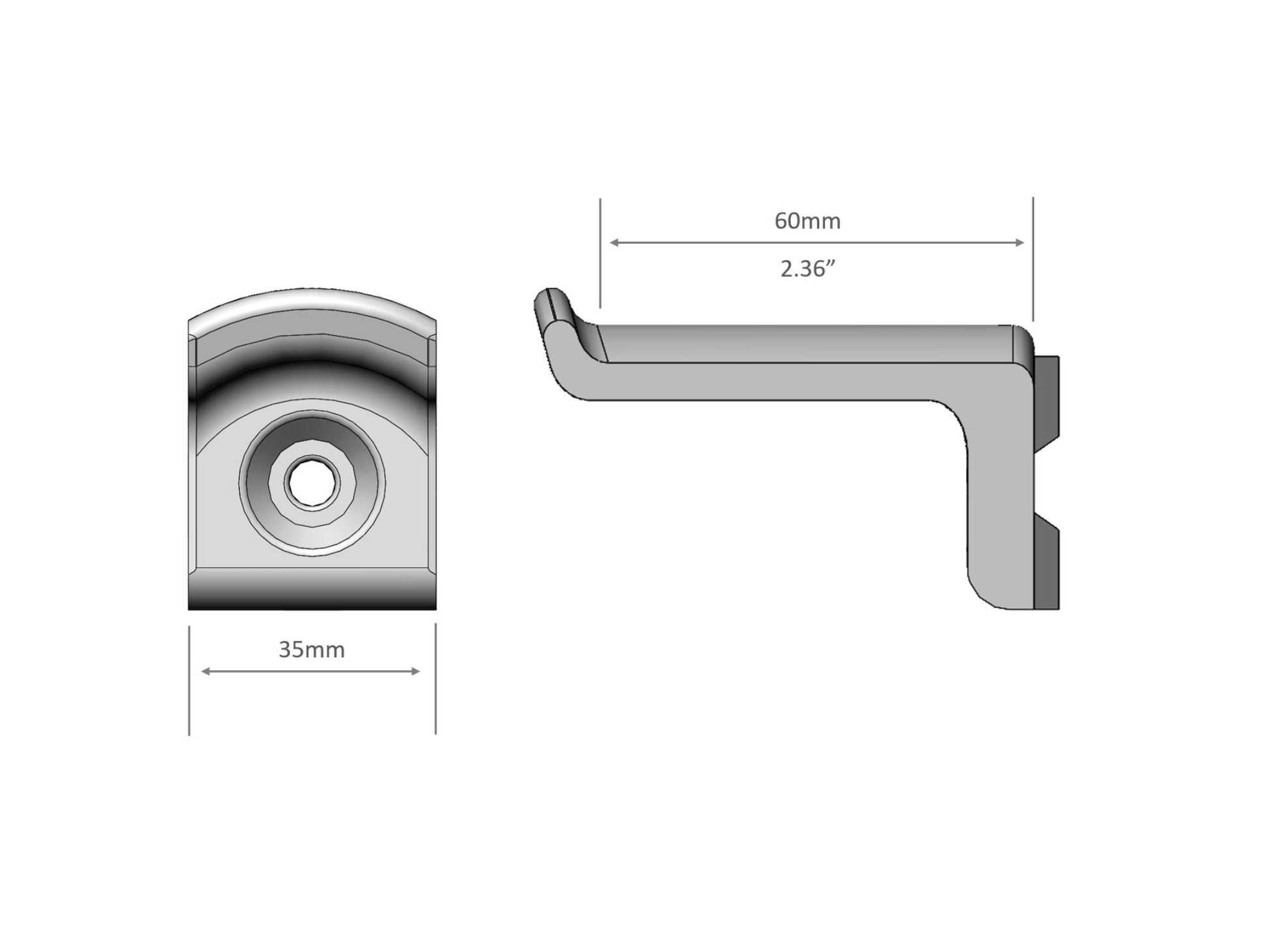 A convenient way to store your headphone or VR headset! Designed for 40 series aluminum profile. Comes with the following mounting hardware: - M6 x 16mm screw - Drop-in style T-nut Available in 2 styles of locating ribs for easy alignment, or go with the universal version without locating ribs.